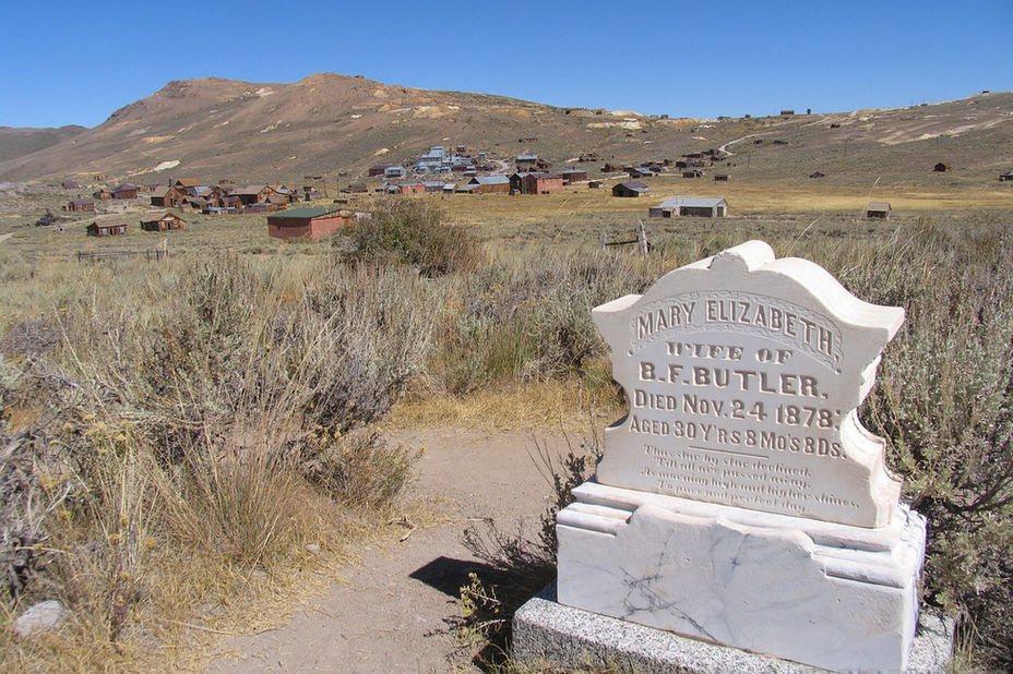 A decade later while prospecting in the Eastern Sierra with a small prospecting party, he discovered gold in 1859 in the hills north of Mono Lake. Bodie never gained anything from his discovery, rather he set out in a blizzard for Monoville near present day Lee Vining in November 1859 for supplies, became lost and froze to death. His body was found the following spring of 1860. Variations of this story compete for truthfulness, as the story of the discovery wasn’t recorded until 20 years later. Authors copied the story and omitted or embellished key details until the actual story has blurred over 100 years of re-telling.