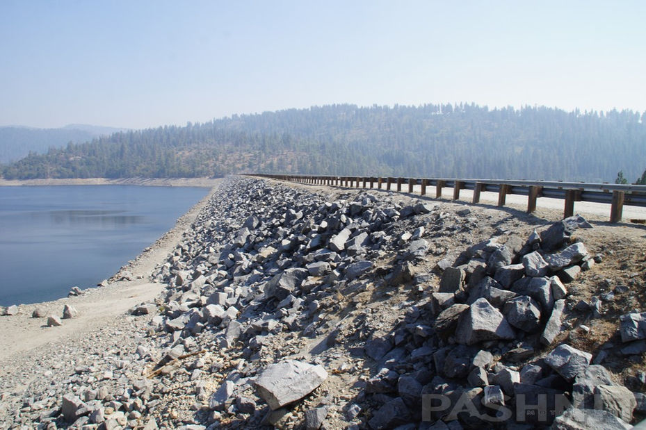 Cherry Lake Dam was completed in 1956 at a height of 315 ft and created a 1535-acre lake at the 4700 ft level. In-flows into the lake originate in the Emigrant Wilderness at the 8800 ft level. A paved road leads to the dam, and then stops at a campground along the west side of the lake. You can ride across the earthen dam to join up with a dirt road that extends north a short distance along the lake edge but this doesn't actually go anywhere. The gate across the spillway and dam closes December to April. Vehicles use it to access the east side of the lake and drive down to the water's edge as the lake level rises and falls through the seasons. This campground along Cherry Lake also provides the perfect base for dual sport riders as all roads to the east are now dirt fire roads. The day-use area is on the west side of Cherry Valley Dam with a boat ramp and a designated swim area.