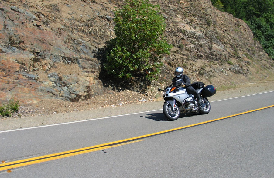 There is a decreasing radius corner about 9 miles west of Happy Camp, it’s only worth mentioning because Highway 96 has a way of sucking you in to a steady motion of left right curves that stretch for miles and we’ve cautioned riders not to get lulled into that comfort zone. The smooth curves last seemingly forever, yet Highway 96 still has some surprises up the sleeve when it hooks left into a decreasing radius apex.
