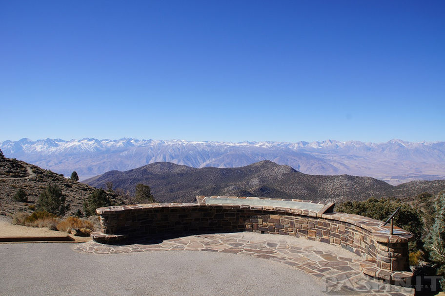 White Mountain Rd is a dead end so this is the end of the line. It was a super-fun twisty ride up; you’ll get to embark on a twisty ride down. The hardest part is keeping your eyes on the road, as the way down to the Sierra View Overlook offers expansive treeless views across the Owens Valley towards Bishop in the valley below. On a clear day, the snowcapped Sierra Range seems close enough to touch. Other times of the year such as in fall, haze may obscure the peaks.