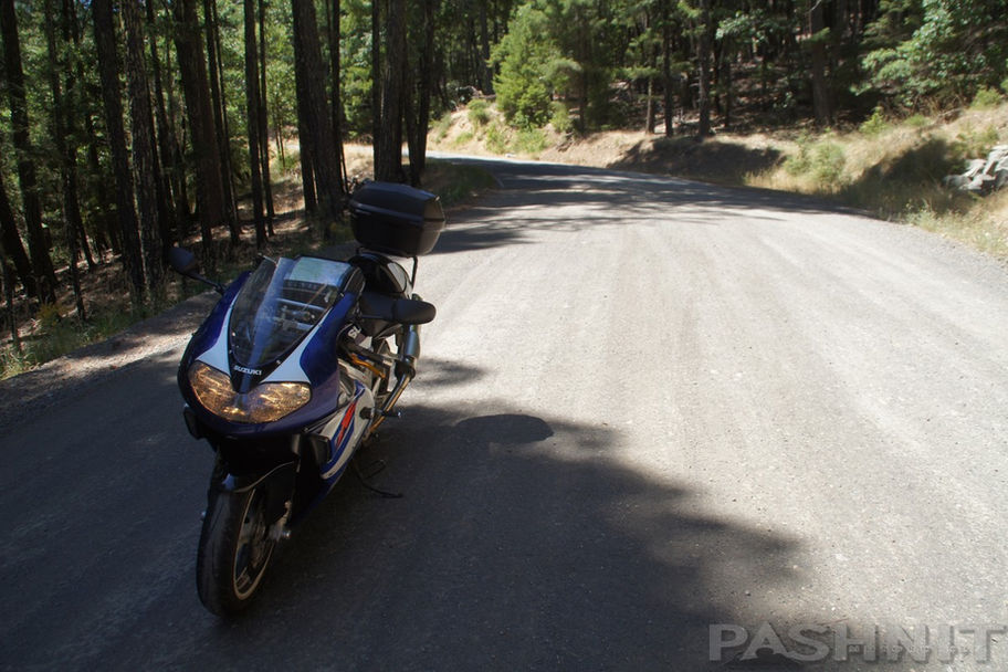Yes, I rode it on my TL1000R which is a v-twin purpose-built track bike. Suzuki engineers probably were not imagining it would ever head up a goat road (a road fit only for goats) like this, but the bike did just fine and my Hayabusa would also burble right along on this road. The racetrack portion is short, less than 10 miles, but it does exist. If you want a race track in the wilderness, you head for Cecilville Rd at Callahan along Highway 3, not here.